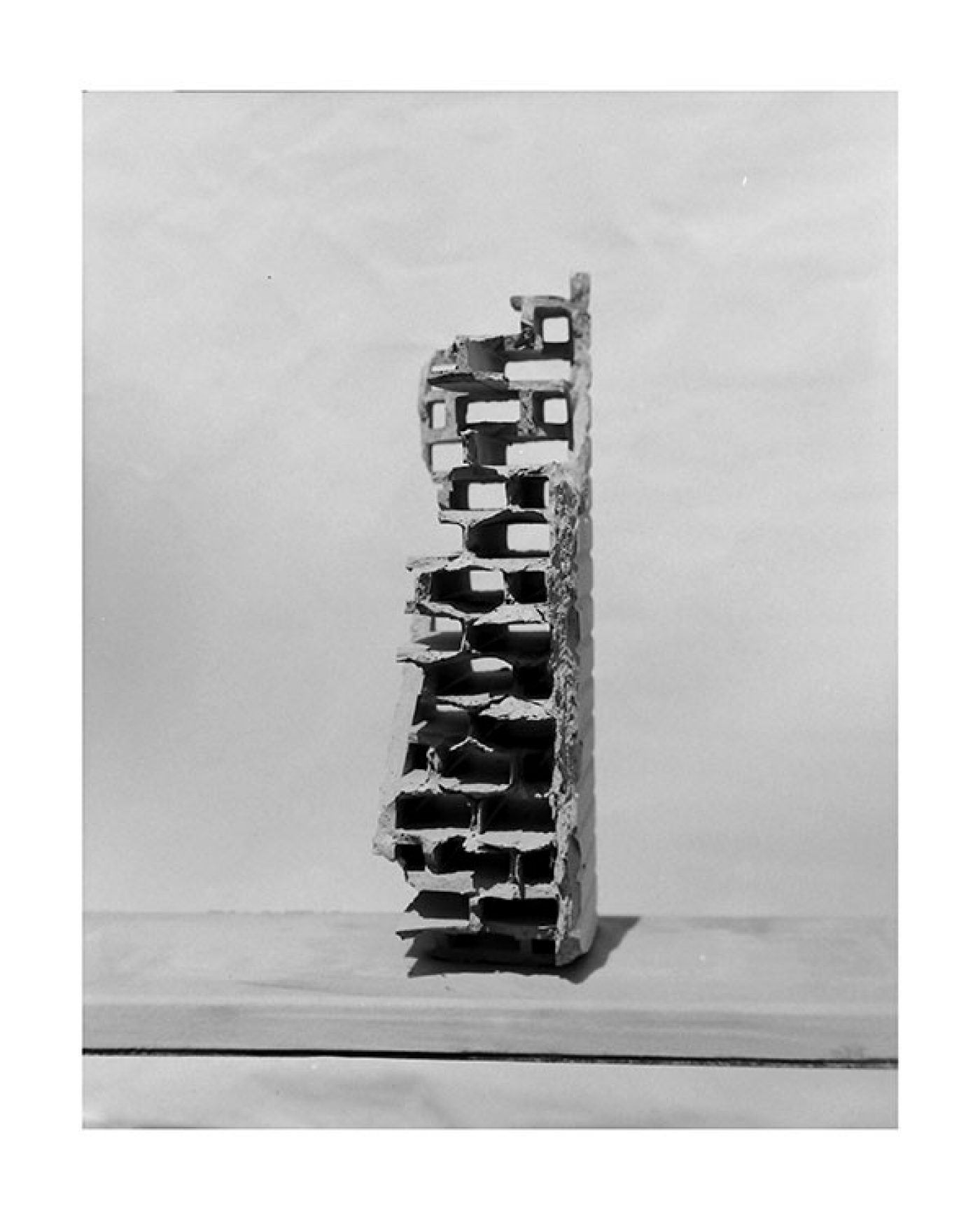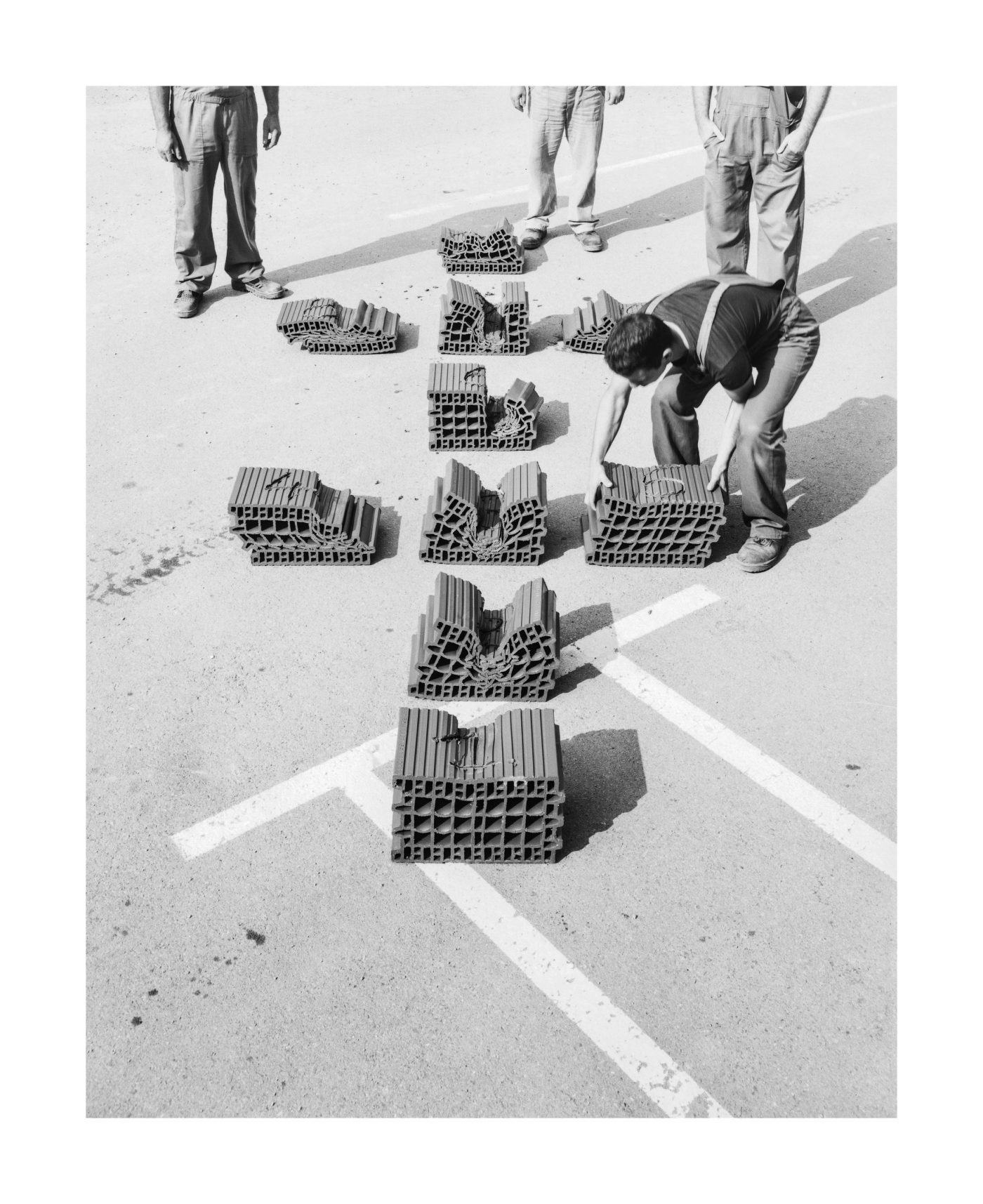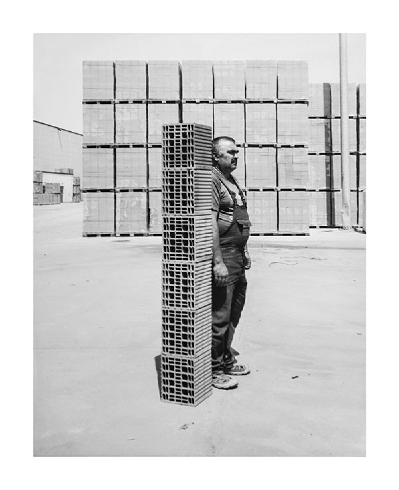 For INSIGHTS, Gábor Arion Kudász traveled through Hungary, Romania, and Bulgaria in 2014. He visited several production plants, building material depots, and construction sites in search of images that illustrate the dimension of the primal element brick and its size relationship to its maker and user – the human being. The result is a comprehensive puzzle of found objects and personal associations.